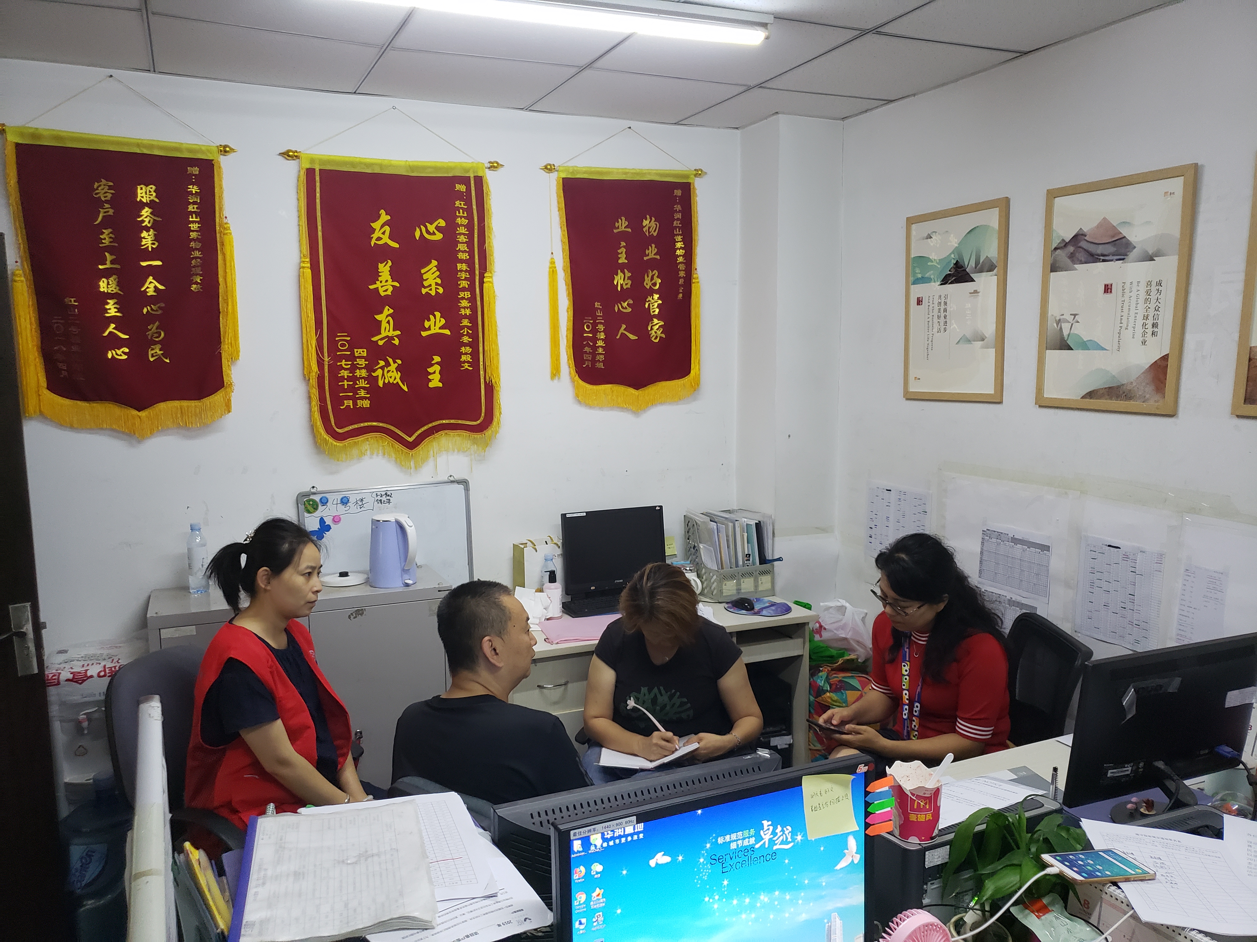 公司领导和员工走进红山社区,听取居委会和物业领导的意见。